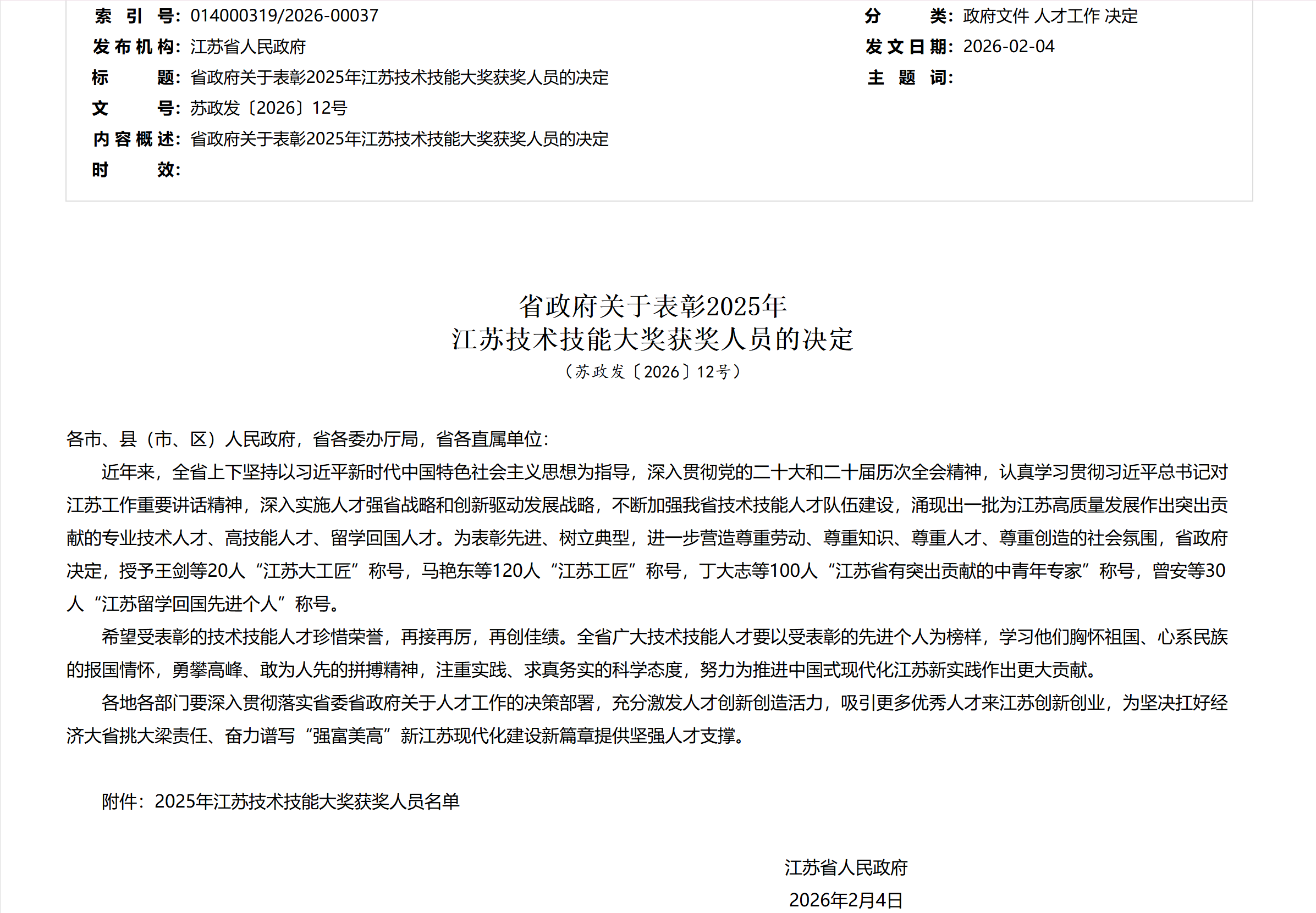 关于2026年江苏省先进工作者拟推荐人选的公示